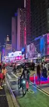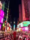 Neighborhood par excellence of nightlife day and night. Even in the evening it seems day. Lights everywhere , music , big traffic especially on the weekend . You easily spend a lot of money if you are not careful. Prices are quite high even a single hotdog costs $10. From here they can walk to other points of interest. At time Square you will find the M&M and Lego store waooo fantastic!!! Beware of people dressed up as Disney characters because they approach tourists with a smile for the photo and then when the photo is taken they want $5.