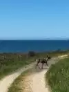 Not widely advertised, but Tomales Point Trail is a fabulous day ride for horses. There is room to part a trailer or two at Pierce Point Road just outside of the old dairy. The trail out to Tomales Point is an easy trip for even a young horse, with the only real obstacle being the Tule Elk which can be found rather close to the trail. Note that there are no hitching racks at the point. We rode to the point and then rode back to the one and only grove of trees about a mile back from the point to eat our lunch. There are some places to tie up there just off the trail for well-behaved horses. Bathroom are down at the beach parking lot further along Pierce Point Road, so plan ahead for a stop there before you unload if you need a rest stop before tacking up. I'd recommend having water at your trailer for your horses as there is no water along the trail without disturbing the elk.