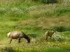 Wildlife is up close and personal. Hawks use the wind to glide in place looking for something to eat. Crows and many smaller birds are around along with the normal shore birds and grass land birds at water level. The Elk do not shy away, and in our case, neither did a Coyote hunting for her meal.