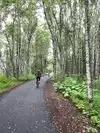 Beautiful forested trail—recommend renting from Downtown Bicycle Rental on W 3rd. We saw a large and a small bull moose within 20 ft of the trail between MM 8-10. We spent 3 wks in Alaska and this was the only good sized bull moose we saw! Because we rented hybrid bikes (not E bikes), I’d definitely recommend turning around before the hill near MM10 since there’s nothing at the park, especially zero outdoor water if you arrive prior to 12:30 when the park building opens!