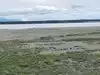 The highlight of TKCT was Kincaid Park, though. We spotted belugas swimming towards Cook Inlet, presumably going with the tide and following migrating salmon. It was here that we finally saw two bull moose, one of which came uncomfortably close as it trotted down the path across from us. The beach was amazing, though the trail down to it was steep and slippery (clearly no longer paved). There marsh was alive with a large flock of Greater Yellowlegs. You get to see the peaks of the Kenai Peninsula to the south. The most spectacular mountain viewing was that of Sleeping Lady Mountain or Mt.Susitna to the west.