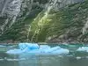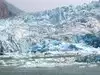 We weren't sure we get in since the week before ice sheets fell from the Sawyer Glaciers and blocked travel for many vessels. We got lucky, and it was breathtaking. The water is a stunning aqua marine color and the ice pieces floating are blue.