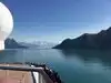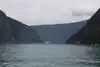 We realized why the Carnival ship was staying so long when we noticed the return of smaller excursion boats to the Carnival ship. The Carnival ship was still there when our ship finally turned around and headed out of the fjord.
