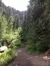 If you are in the area of Wolf Creek Pass in South Central Colorado...look for a pull out for parking about six miles below Wolf Creek Pass and Ski Resort. This pull out has two trail heads...both easy to do...that are good hikes for most family members. The waterfall is especially nice, and is about a mile long hike. The picture near the review I am typing is a good reflection of the destination of the hike. Although you can see it from Hwy. 160, it is worth the hike to feel the cool spray of the water hitting the rocks at the bottom of the falls. It is a very pretty hike, and near Bruce Spruce Ranch campground and the town of Pagosa Springs, Colorado