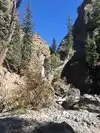 This is a popular place to stop and look at Treasure Falls. To the left of the parking lot is a trail climbing an overlook near the top of the falls. The best time to see the falls is during spring snow melt. A couple miles up US HWY 160 is a view point looking down the San Juan valley and with luck seeing Rocky Mountain Bighorn Sheep on the slopes above the parking lot.