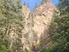 a short drive northeast of Pagosa Springs on U.S. Highway 160, the quite popular Treasure Falls is certainly a must see !!! There is a fairly sizable pull out parking area, and the place is very busy with sight-seers. There are 2 trails up to the falls viewpoint: the trail to the left is fairly well developed, however it is a bit steep and has a number of switch-backs...but it is not that long, maybe 3 tenths of a mile. The trail to the right is apparently more primitive and is quite a bit longer. Anyways, we took the trail to the left, and even though it was quite busy with foot traffic, once we reached the falls was worth it !!! Fairly tall, with quite a bit of water, a nice side trip that doesn't take too much time at all...perhaps about an hour total...but you could take more time if you did the complete round trip to go up on the left trail and come back down on the right trail. Enjoy !!!