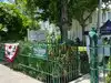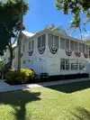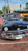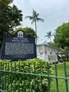 The museum iron gate surrounds well a manicured lawn which boasts the Key West Home draped by flags which includes history markers to enlighten you. The vehicle sits outside under a canopy garage.