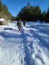 Other hikers told us that the hike to Double Falls was snowy but manageable if you stay in the center of the trail. The hard center of the snowy trail is only 8 - 12" in most places and incredibly slippery, so we ended up sinking into the snow up to our knees many times. Finally made it after a very slow and wet journey to the beautiful Double Falls - wouldn't do it again. Very dangerous for sprained knees, ankles, etc. Took almost 4 hours to do the total 7+ miles.