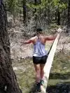 You hike steeply for about 5-10 minutes, and then you're at the falls! There is a big, nice viewing area. Then you can get on the trail and walk along (above) Tumalo Creek for 4 miles, then return. Highly recommended.