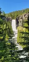 This is a beautiful waterfall even in late summer with plenty of water flow and only a short easy distance from downtown Bend, Ore. Pros: beautiful falls, fenced viewing area, trails with other falls continuing up mountain, easy directions to falls, dirt road fairly well maintained, able to see falls from parking lot, short walk to falls from parking lot, public bathrooms. Cons: Couple reasons why I didn't give it 5 stars; very small official parking so parking is scare, but you can park along the dirt road; extremely busy and popular so lots and lots of people; dirt bikes are allowed on trail so you have to be alert for them to come racing by you. Most bikers were considerate and gave us warning they were passing us, but not all...watch if you have young kids; Very long walk to parking lot if crowded. Best advice to see this beautiful waterfall...go early!