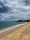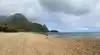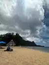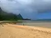 We came in October and it was rainy and overcast. There were rip warning signs on the beach but still quite a few snorkelers out there. There's no vendors on the beach though so you'll have to bring your own gear. It's nice seeing the mountains in the background with clouds covering the tips, but otherwise the beach is nothing special. The sand is yellow and coarse and the water isn't picture perfect pristine. And the drive here (from Princeville) isn't amazing. It's narrow, windy and just goes through forestry, so you don't get a nice coastal drive that I would have expected.