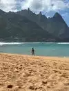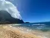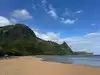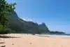 Absolutely beautiful, so natural and unspoilt, soft golden sand with a gorgeous backdrop of the start of the Napali coast.