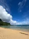 This is a great beach with amazing views of the Napali Coastline. Surf is fairly calm in the summer. Snorkeling is awesome and we saw turtles just off the shore. Parking is limited but beach doesn't get too crowded like CA beaches. Definitely one of the best areas in Kauai.
