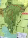 It is a little hard to get information about the trails--the pdf on their website seems to be missing elements that should be on the legend. Specifically, the triangles represent key elevation marks, and therefore, likely the best views. (it appears that the best viewpoints might be Turtlehead (1005 ft) and Raven Ridge (1519 ft).