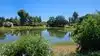 Currently, in August of 2016, the upper half of the waterway is empty as upgrades are being done, apparently adding a weir so that there is more movement of water. The water usually has a bright green sheet of what I think is algae of some kind, which is apparently a normal part of a healthy pond environment. However, I believe the upgrades are meant to reduce this.