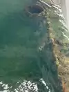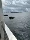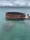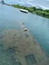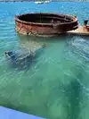 When one Google searches the memorial, one sees dramatic photos from overhead that show the entire top of the ship visible just below the water. However, when we were on the memorial, the water was not transparent and one could only see the few parts that were above the surface of the water. Perhaps there is better clarity on days with less wind; but I had expected more of the ship would be visible.