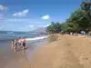 There are no hotels fronting this beach, only private homes and condo developments. But the beach is excellent - no rocks, except at either end of the half mile sweep of sand (where there is passable snorkeling). The depth of the beach is excellent, with lots of room for beach chairs to be set back from the surf.