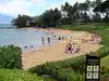 This is a lovely, sandy, crescent-shaped beach. I view it as a mini Wailea Beach -- not as wide as Wailea, but also without the cheek-by-jowl rows of hotel beach chairs and umbrellas.