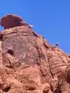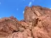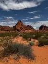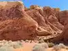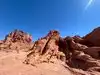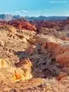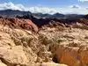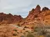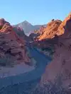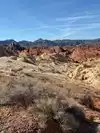 The hidden gem of the area and much less crowded that Red Rocks and a lot prettier. Mainly 100 to 200 tall rock outcroppings of red and some other rocks. The small park is on one side of a valley on a road between I 15 and Lake Mead. Only one 11 mile dead end road into the park with several short hikes to viewing points or about a mile loop trails. Nothing very strenuous but are some steep sections. There is a small welcome center with water, working bathrooms and snacks, no real food. Loads of outhouses at the parking pullouts.
