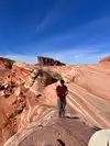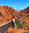 We rented a car overnight from Avis at the Mirage hotel and went early to the park. We got there about 7:30-8am. A great time to get there I think. Was a Saturday. So beautiful! I was drawn to some of the photos I had seen online and prefer hiking to playing slots or walking the strip in Vegas and so glad we got to see this park! For the nice view of the road with red rocks each side - drive first down the Mouse Trap road to the Rainbow Vista parking lot. Then walk backwards along the road you just drove and look that direction. You will see the view and then you will see some rock areas on each side of the road you can climb up to get some great views! Then get back in your car and drive to the lot near the Fire Wave trail. Walk across the road from the main parking lot and take the trail to the Fire wave. Once you see the swirls of rocks head close to the edge and then also the other direction for different views and photo spots. You can then continue along and loop over the road and back to the parking lot on the other side. There is a small a lot canyon area. We did not go to the Whote Domes trail but I think that you get great views and another slot canyon there. You can then drive to other spots including elephant rock