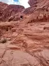 People with knee or hip issues should know that the trails are soft sand and pose some difficulty. We did see many people turning back on White Dome. There is a fairly steep descent which we chose not to risk. Mouse Tank is more of a flat trail and with care is manageable. Climbing the last part of the trail is definitely worth it for the view.