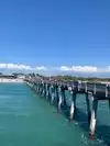This was a beautiful place to catch a sunset or evening walk. Local peeps are very friendly and shared some fishing stories and their catches of the evening. The dock goes far into the golf and has some lowered railings- so keep a close eye on your little ones. Have seen few cockroaches on the dock- not sure if they come from the Sharky's restaurant or after bate leftovers. Bug spray wouldn't be a bad suggestion. Beach around the dock is nice also- has soft sand and shells to play with. Fun to watch pelicans fishing as well. Couple of outdoor showers aren't so great. Water pressure isn't good and bugs will eat you before you can finish rinsing yourself. So, just don't wait until late in the evening to rinse off. Parking is free. it's also a great place to watch lightning and cloud formation as the one we pictured.
