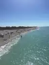 This is a well constructed and busy spot filled with sight seers and fishermen. It is well traveled and used but just has that neat on the beach feel. In and around the pier people hunt shark's teeth too. Its a decent spot to cast a line or just watch the sun set. Good for all ages! Easy to access.