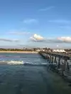 Very nice large extended pier with opportunity to rent a pole and buy bait. Buy a few snacks and get a chance to see dolphins swimming at the end of pier . Nice for family. Then walk down to less crowded beach and soak in sun and view. Do the hat trick of sharky's. pier, and beach .