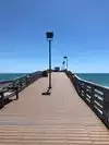 A big pier with people walking around & fishing. The view is beautiful... the breeze in your hair, the waves & kids playing on beach. Bait shop if needed. Places to clean your fish. Fun to watch the serious fishermen. One caught a lemon shark. Snarky restaurant & bar is on the beach...