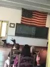 Amused by the accordion player in the school house. We had a chat with him in French, then he played some Acadian music from Missouri on his iphone!