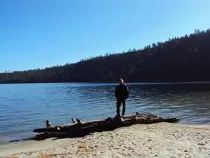 Very cold water and beach is still covered by a lot of water from the snow melting. 1 mile downhill to beach and vikingsholm. It also joins the rubicon trail which is one of the best views of the lake as it hugs the shoreline. You pass through campgrounds on the way to D.L.Bliss state park where there is another beach at the bottom of the mountain. It is a 4 mile hike so 8 miles to and back. It takes about 2.5 hours each way so bring lots of water.