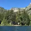 This is a spectacular home built in the 20's with local materials and a Scandinavian flair. The hike is is easy about 1 mike on a forest road. The home sits right on Lake Tahoe at Emerald Bay.
