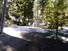 There is a bookstore nearby that sells snacks and drinks. Lots of picnic tables to get out of the sun. Clean pit toilets on property.