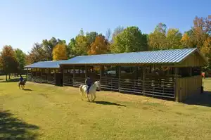 The horse stalls were conveniently located, clean and safe with a restroom close by. The horses were comfy and happy.