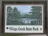 I am impressed with Arkansas State Parks. The welcoming signs are beautiful and creative, park rangers are friendly, campsites and bath houses well maintained, admission is free and camping rates are reasonable.We stayed in this campground four nights during the week and it was almost empty so we had plenty of wide open space and uncrowded trails. Our large campsite on the creek included water, 30AMP electric, and a picnic table. (There is another campground with 50AMP and sewer connections but it is a little more expensive) A clean bathhouse was nearby. The visitor center has info about the area and a nice gift shop. No internet and Verizon phone service only available several miles away at the entrance to the park. Our television reception was nil but I appreciated the relaxing quiet. Our biggest problem was the voracious mosquitos and we learned to put on repellant immediately. If the insect population is an indication of a healthy ecosystem, Village Creek is thriving!