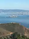 Whether with a low for or big bright skies, these views are incredible of the bridge with SF in the background. You can watch huge tankers, beautiful sailboats and with binoculars, lines of kayakers, headed out to sea. During fleet week watching Navy ships headed into port is very cool.