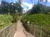 The path makes a big curve after the Four Seasons Hotel, goes over a short wooden trail bridge and up a hill. From here on the trail becomes non wheelchair accessible.