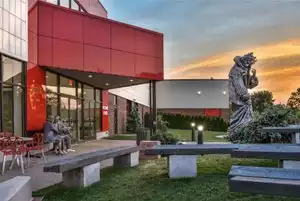 If you have your dog with you, you are not allowed to go up in the seating area with your pet.