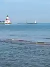 Michigan City has a real gem in the beautiful beachfront and lighthouse. There are not many beaches with the beautiful "singing sand" that is here on this beach. On a clear day you have a view of Chicago just beyond the Lighthouse.