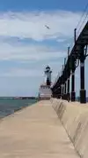 This is a beautiful beach/park on shores of Lake Michigan. Pay a daily fee ($7 for out of towners) and park for zoo, kids splash pad, beach, lighthouse museum, pier, etc. Lots to do and see, gorgeous sandy beach. Beautiful boats to observe. zoo small and cute. Great view to walk out on from pier.