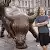 Once we got to the Lewis and Clark memorial we realized: we had no idea what to do next! The park was mostly deserted, it was drizzling and cold, and there was construction happening on the other side. We did a quick review of Google Maps and headed down the slope to the Sacajawea Statue (pausing so that I could swing my old bones on the swing set, naturally).