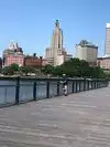 Lovely walk along the river. Entered through a tunnel lined with tiles commemorating 9/11. Huge mall is close by. Took a small detour up into Brown University also. Very pleasant.