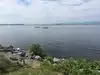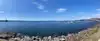 Beautiful views of water and mountains. Ferry to other areas available. Seating with tables at restaurant and also walking path was nice.