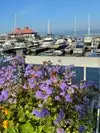 Very pretty area by the water. Great place for a stroll or to walk your dog or even bike. There are swings by the Marina that you can sit with a beautiful view of the mountains. You can also see boats entering and exiting the Marina. Beautiful place for a picnic with a family. Great place for a bike ride. Green areas everywhere. Pay to park is available.