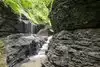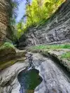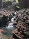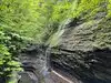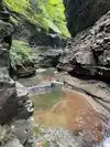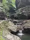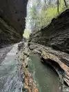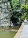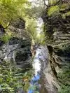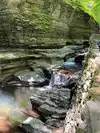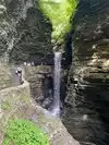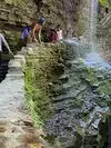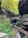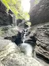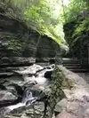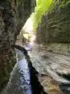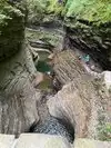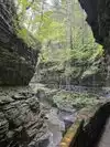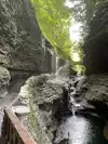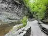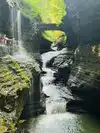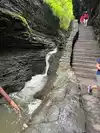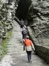 Watkins Glen State Park was amazing. The park office said they were in a dry spell so the steps and walkways wouldn’t be wet and though some earlier reviews said a rain jacket might be needed due to continuous waterfall spray - we left in car and it wasn’t needed. Glad we wore hiking boots as the terrain is uneven and some trail areas were still wet and muddy. That being said. Because it’s a narrow gorge the waterfalls and terrain were still gorgeous. The CCC built the 800+ steps, switchbacks, bridges and pathways in the 1930’s and they have weathered well. At one point you can walk behind a waterfall. We are in our mid 60s and didn’t want to hike round trip so we parked at the bottom lot and took the shuttle to the top, walking down the gorge vs up. We were glad we did but you do have to stop and look back or you’ll miss some of the amazing features and falls. I was glad I had a light weight long sleeve shirt wrapped around my waist as I did need it to protect my camera on one stretch where water was spaying down from overhead, including on the pathway. Other reviews said go early. We meant to be earlier but didn’t get to lot until 9 am. We were able to park in first lot but it was filling up. Glad we started at top because the later crowds were coming from the bottom so we had less traffic to start. By the time we were at the bottom there was a heavy traffic of people. Many were not properly prepared wearing flip flops and clogs while holding babies. Wear at least decent tennis shoes and have babies/toddlers in front or back pack. We also had walking stick which helped on uneven or loose rock pathways.