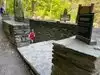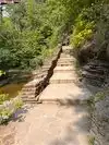 In taking the Indian Trail back to the main entrance on Rt. 14, the trail by the cemetery before the suspension bridge is very steep. The last part of it down to the main entrance entails negotiating 300 steps.