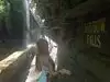 The map indicated multiple trails but due to construction we were all directed to start climbing the stairs. There were literally hundreds of steps just to get onto a trail - it was grueling! In addition, the trail was already wet but it started raining again shortly after we finally got to the top of the steps. As we walked along the paths, trying to keep our little one safe on the slippery stones with multiple people passing by was quite challenging! When it started to rain hard we came to a stone staircase with no railing and I began questioning whether it was safe to climb it in the rain with a young child. As we stood there huddled under our umbrella trying to decide what to do scores of people were coming down the steps heading back likely because of the rain. I intended to wait until the path cleared a bit to get closer and see the actual conditions but my son, sensing my hesitation about the safety, starting crying and screaming that he wants to head back. We had walked for at least 45 minutes (possibly an hour) and we did not see one waterfall yet! The first "official" waterfall was just coming into view but it barely had any water!