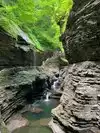 the watkins gren state park located in the Fingers Lakes area. has a number of natural waterfalls that will surely amaze anyone. we were there on an organized tour, as a stop before going to Niagara Falls. very suggestive park and you can take beautiful panoramic photos. Free excursion.