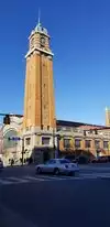 Beautiful building with a vast assortment of shops - meats, pastries, cheeses. A very fun way to shop for food. Metered parking along the street.