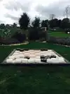 life-size checkerboard, duck pond, labyrinth, distillery, drying barn and gardens with swings.